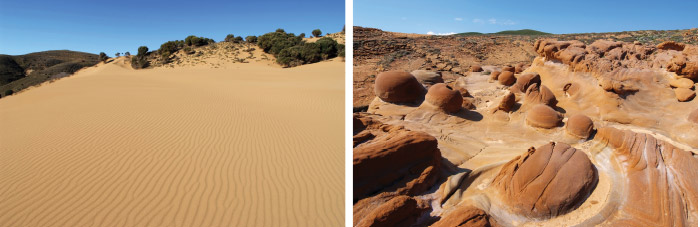 A phenomenon resembling a real desert: spectacular formations of fine sand, forming a unique and fascinating landscape, interrupted only by scattered brushwood. The Dunes are located in the Gomati area of about 70 acres. It is the perfect place for walks and photography.