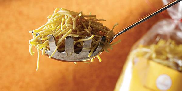 Boil the flomaria pasta in plenty of salted water, drain and place back into pot. Chop the mushrooms into slices and fry them with the onion in a wide nonstick pan with a tablespoon of olive oil. Once browned, add wine and wait 2-3 minutes for the alcohol to evaporate. Add butter, salt and pepper, add the pasta in the pan and stir well.